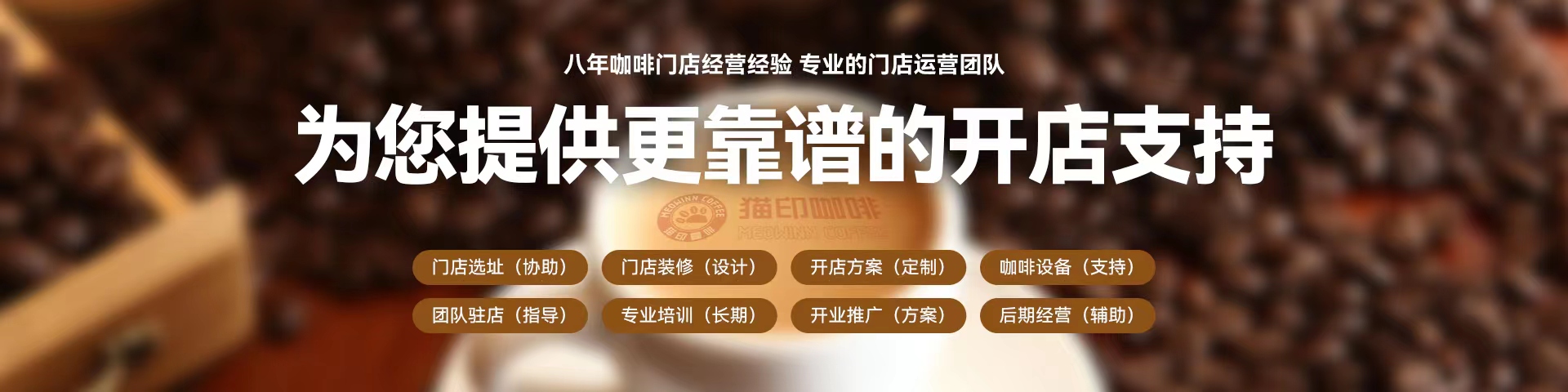 全封閉式開業教育培訓、店面定位扶持、新品培訓、業績提升培訓、全國加盟商會議、咖啡師等級評定、終身餐品飲品培訓體系。
